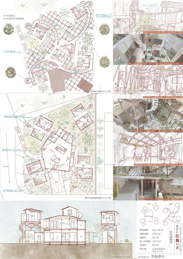 (木の家設計グランプリ2022 一般投票賞/杉山隼斗 B4)